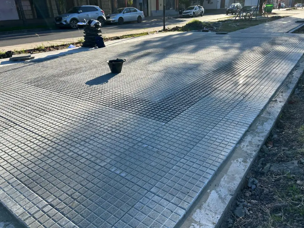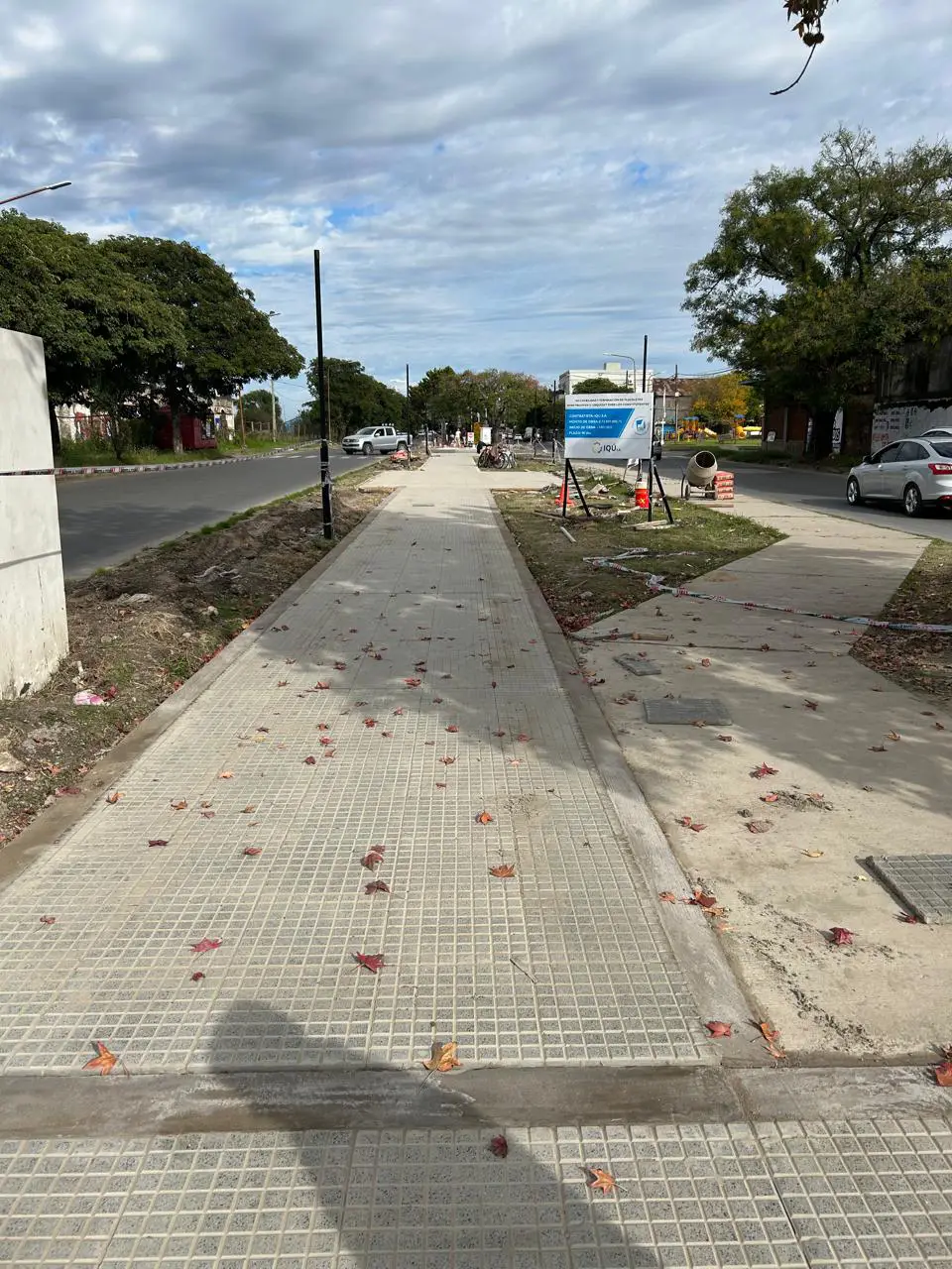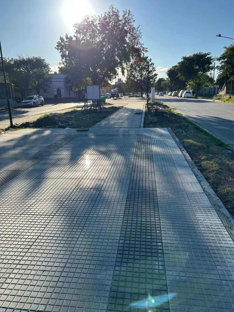 Terminaciòn de plazoletas Bvar Yrigoyen, de los tramos comprendidos entre las calles Millan/Maipù- Maipù/Reibel. Colocacion de baldosas Burnish recta 40×40 en dos colores, y baldosas podotàctilles en terminaciòn rampas. Bancos laterales, atriles para colocacion de placas.