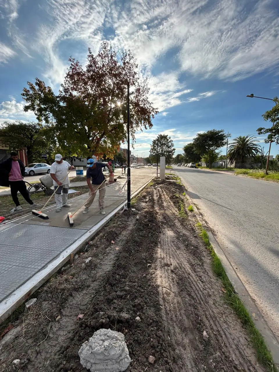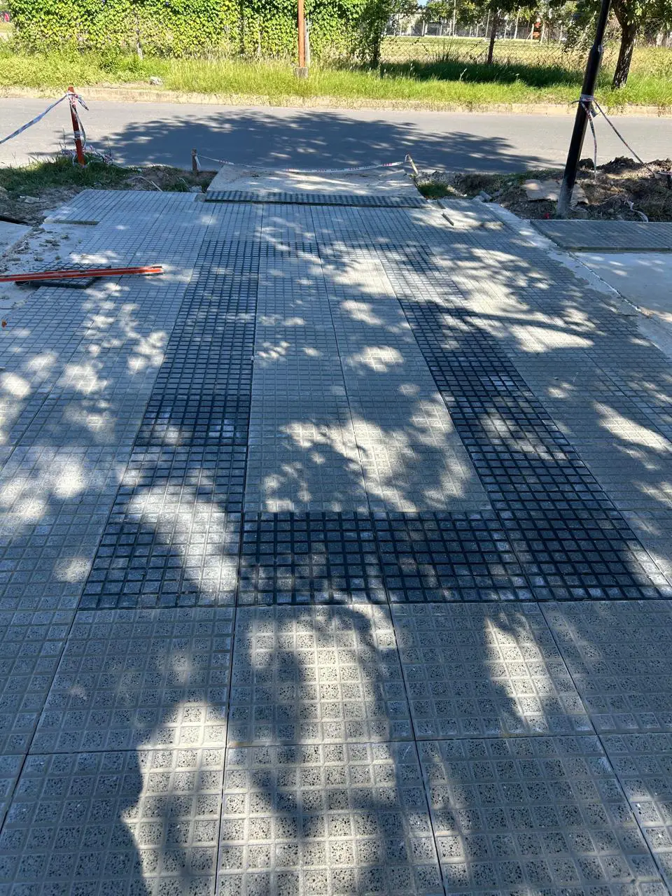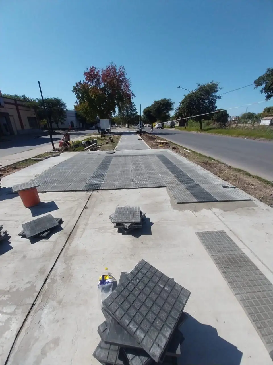Terminaciòn de plazoletas Bvar Yrigoyen, de los tramos comprendidos entre las calles Millan/Maipù- Maipù/Reibel. Colocacion de baldosas Burnish recta 40×40 en dos colores, y baldosas podotàctilles en terminaciòn rampas. Bancos laterales, atriles para colocacion de placas.