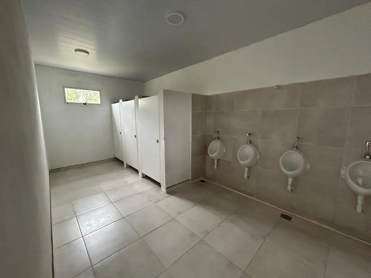 Los bloques sanitarios cuantan con 110 m2 de saniatrios para damas, caballeros, sectores de depositos, baños de discapacitados, zona de lavadero de camping.